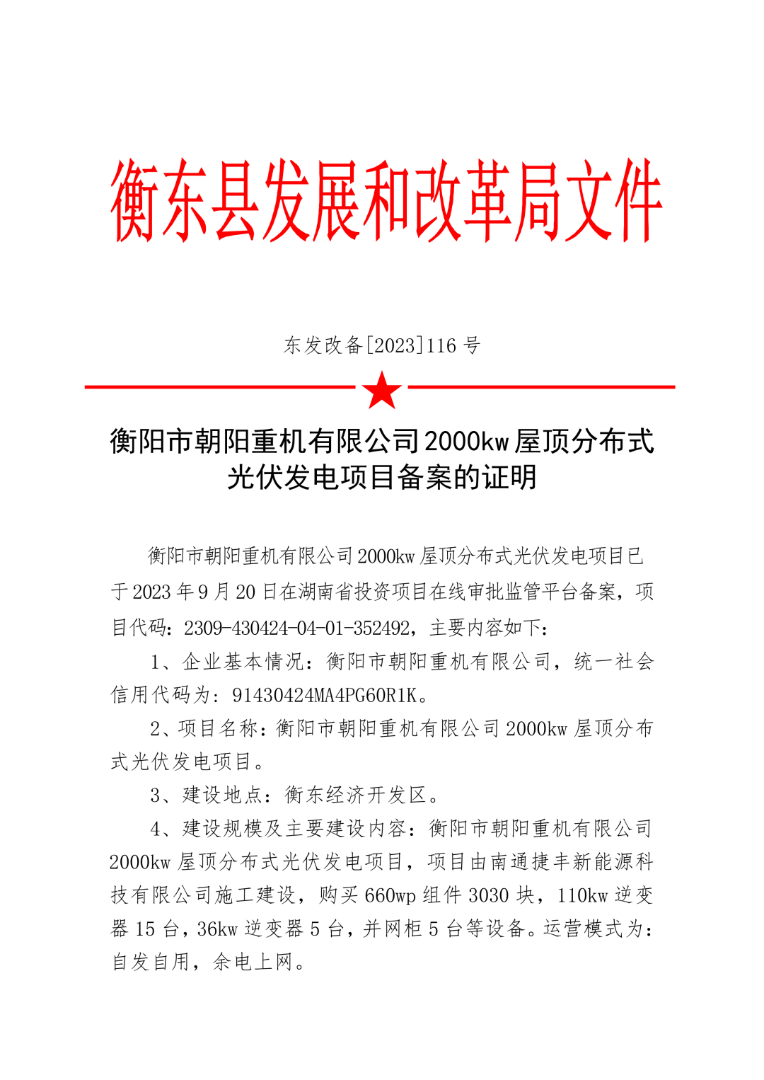 朝陽集團4400KW屋頂分布式光伏發(fā)電項目,以是公司廠房屋頂為基礎(chǔ),投資約1500萬元,安裝660wp組件3030塊、110kw逆變器15臺、36kw 逆變器5臺、以及并網(wǎng)柜5臺、自動清洗機器人等設(shè)備。所發(fā)電量主要自產(chǎn)自用,余電并入國家電網(wǎng)。該項目當前是衡東經(jīng)濟開發(fā)區(qū)甚至衡東縣第一家大規(guī)模的企業(yè)屋面太陽能光伏發(fā)電項目。項目建成后將為企業(yè)帶來巨大的綠色能源,也能為公司帶來實實在在的經(jīng)濟價值。